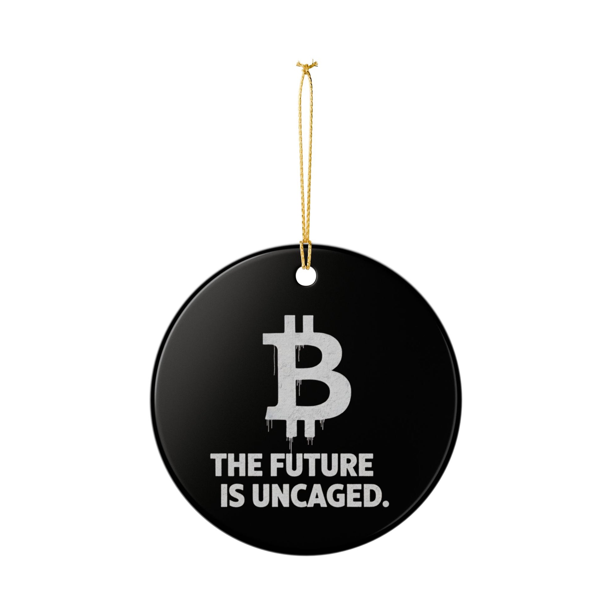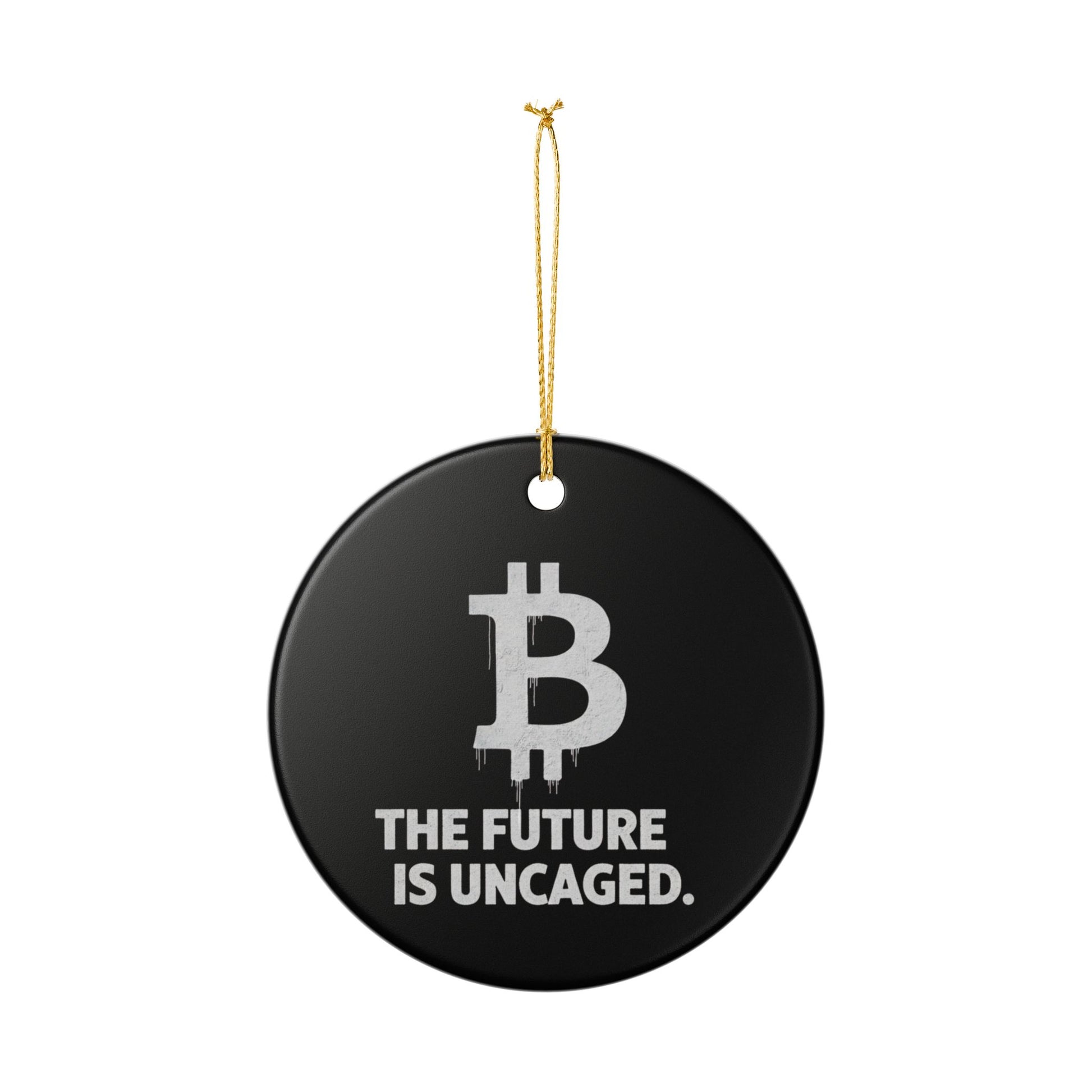 Bitcoin Ornament – "The Future Is Uncaged" Ceramic Holiday Decoration
