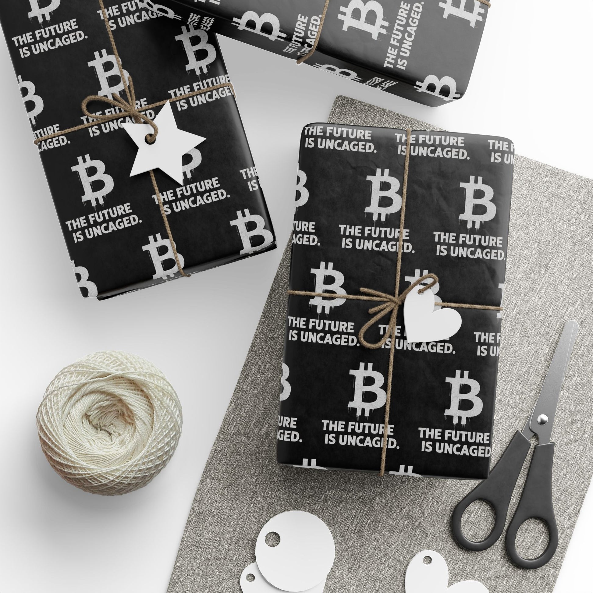 Bitcoin 'The Future Is Uncaged' Black Wrapping Paper - Crypto Gift Wrap